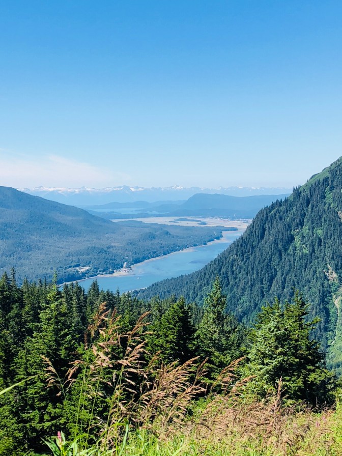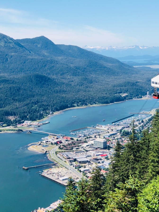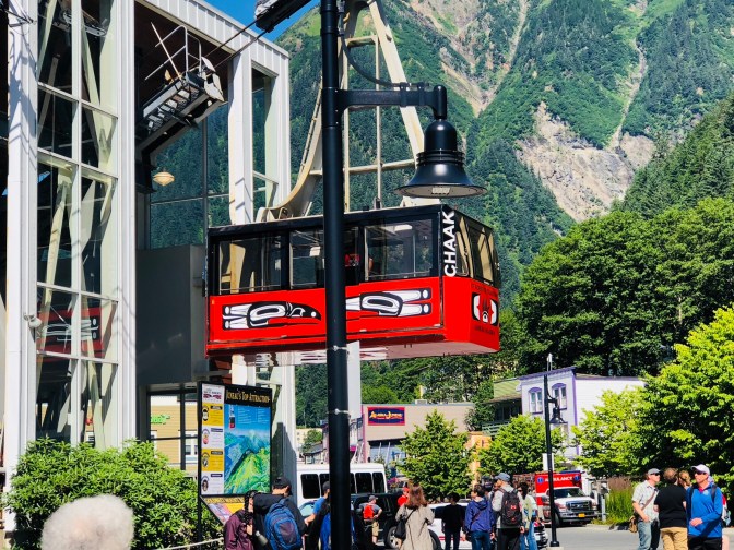 This morning we watched whale on starboard side of ship..made it to Juneau about 11a.m. We rode the tram up side of mountain. We went shopping and ate fish/chips and played Pictionary , went to comedy show and met the first women to win Iditarod race, when we returned to ship.