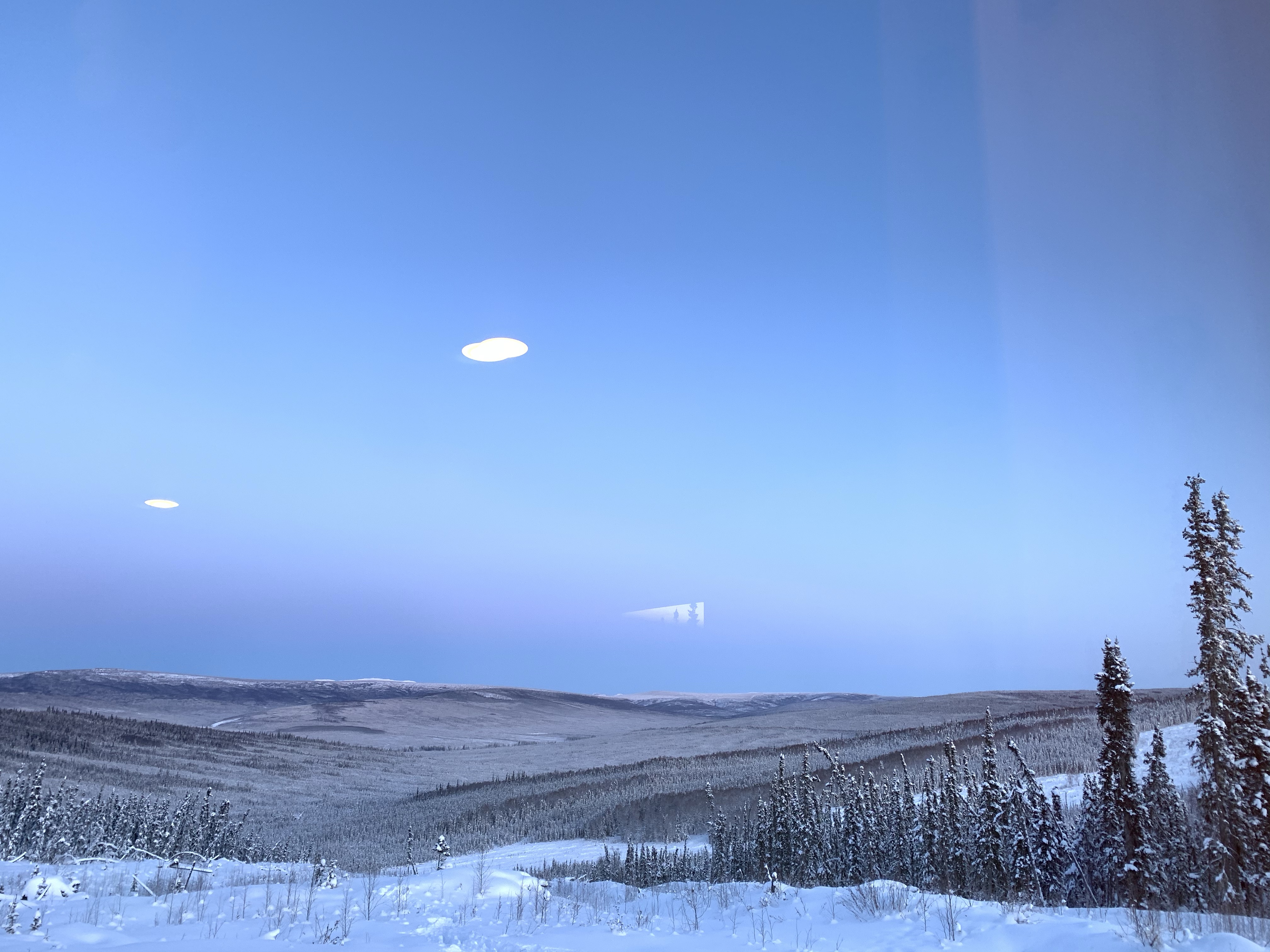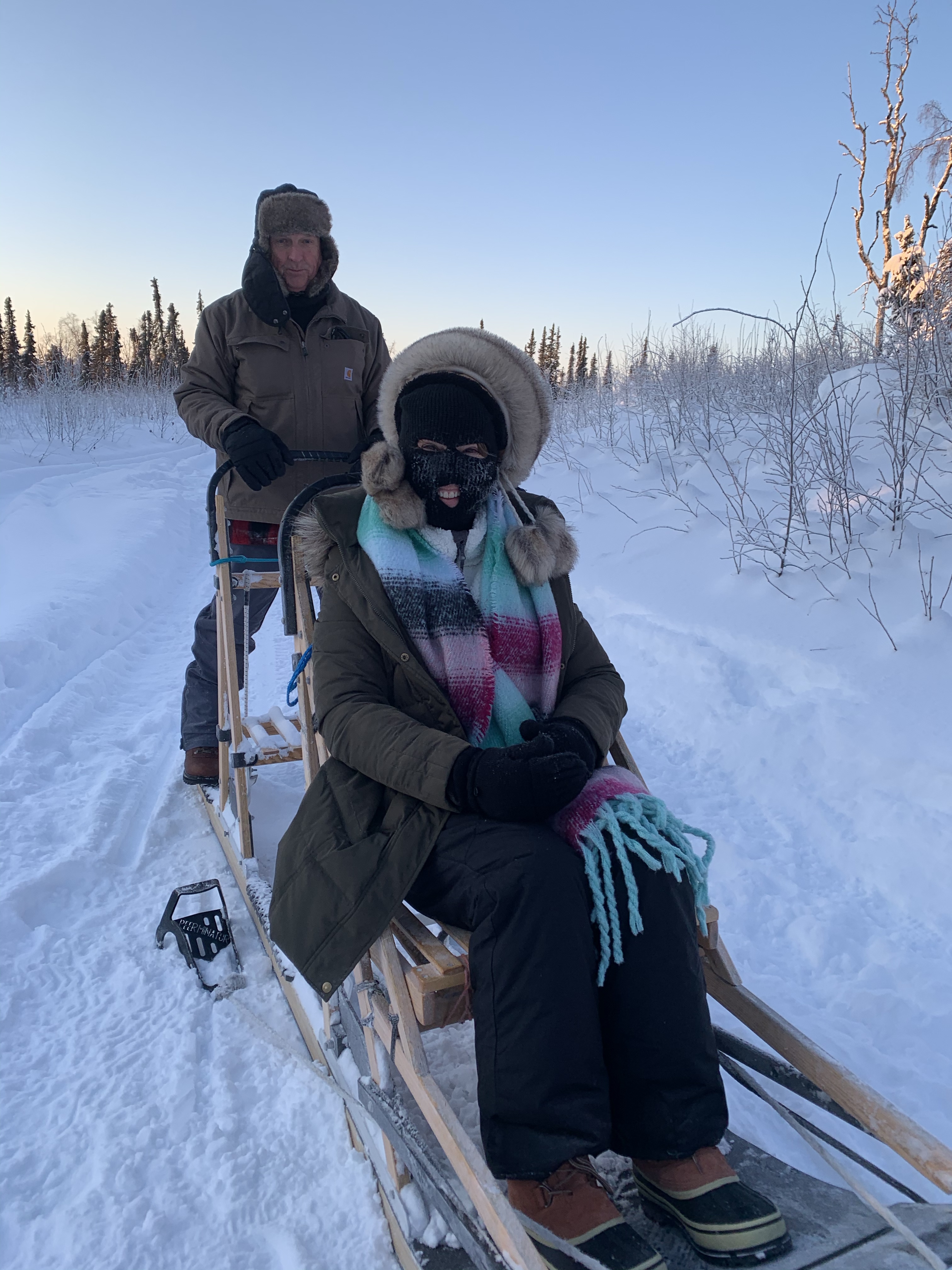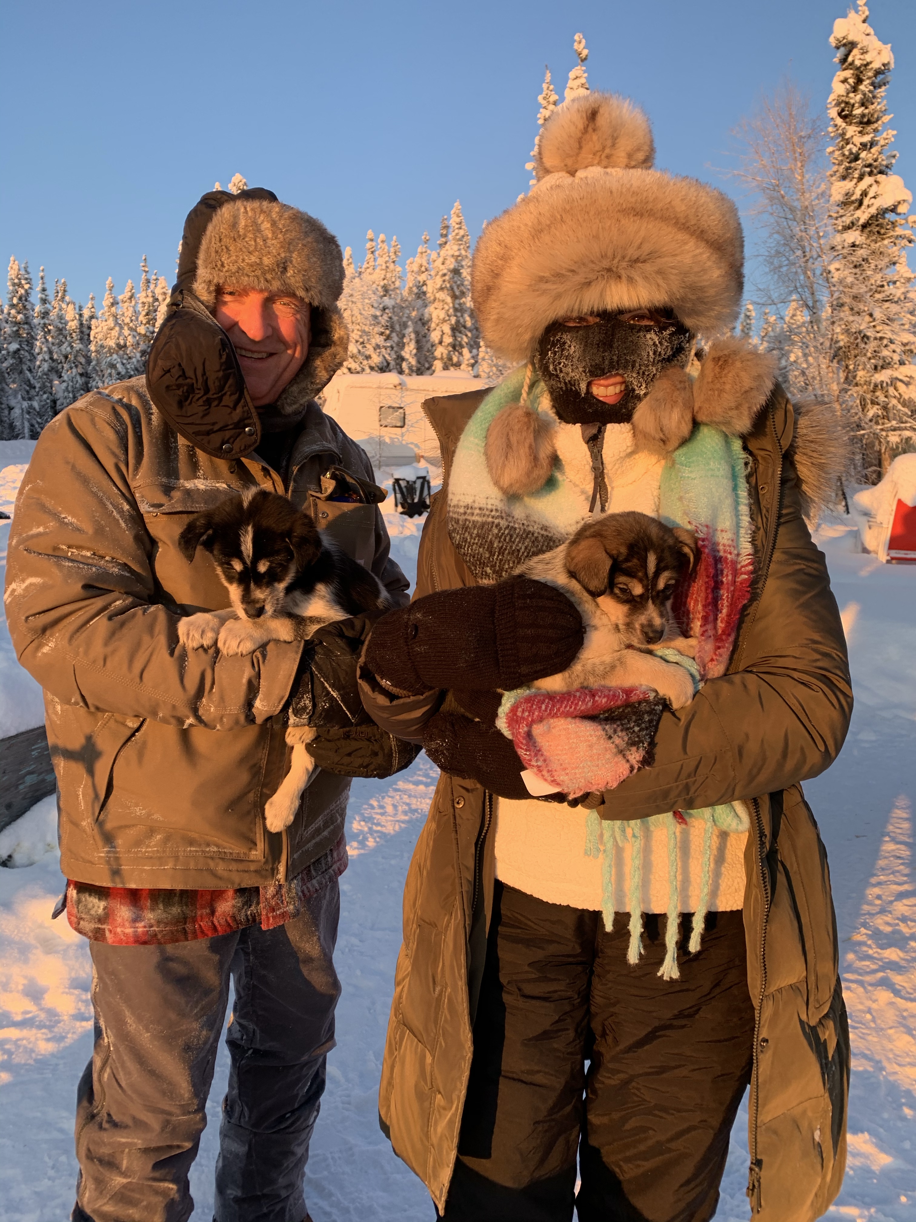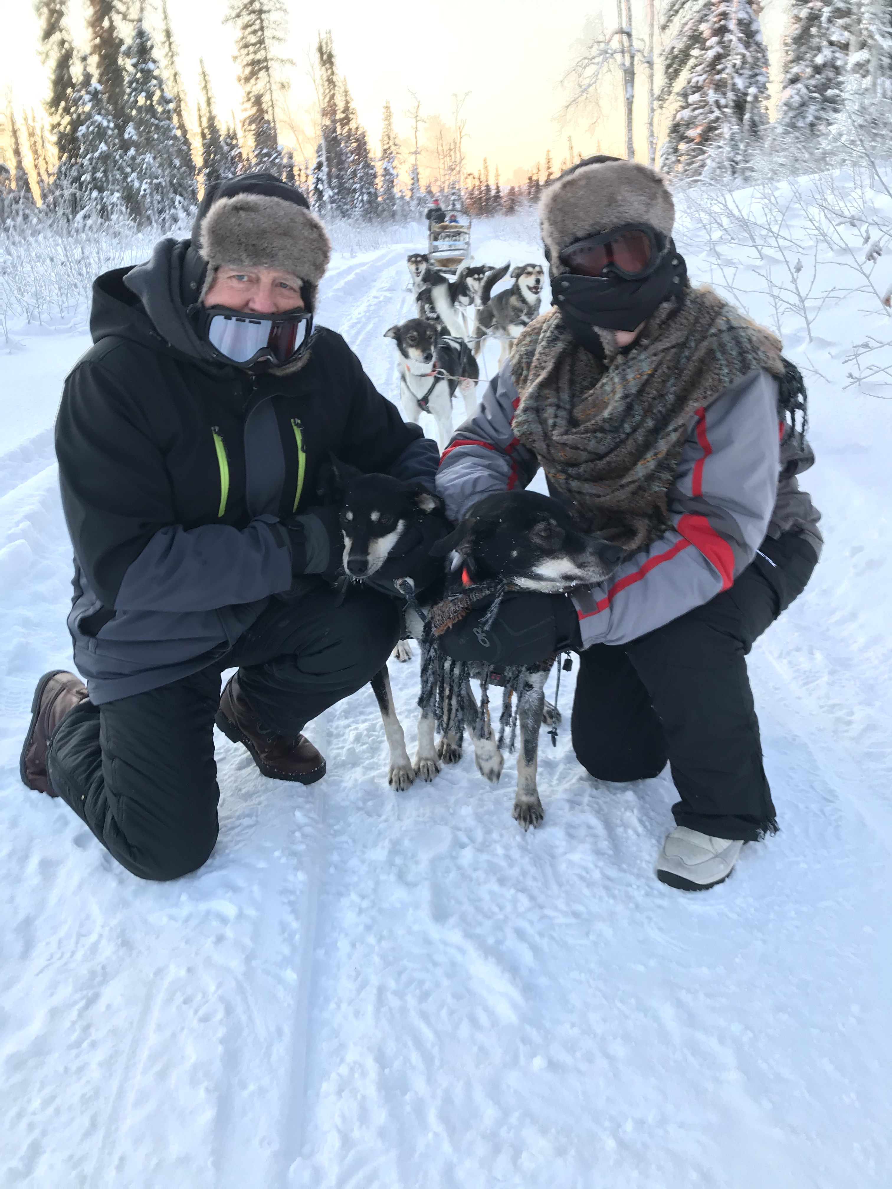 -20 degrees today. Nobody can recognize me in these pictures with so many layers , hand and feet warmers and I still couldn’t feel my fingers when I got back. It was truly beautiful riding in the winter wonderland. The puppies were precious and I was tempted to try and hide one to bring home. The dogs are mostly a mix of Alaskan Husky, Pointers. They are racing dogs and can check them out on Facebook under Racing Chaos. There is sunlight here between 10:30 a.m.- 3:00 p.m. The meals here have been great! Chris our waiter has been so helpful with meal choices and our outside activities. Marcia and Wayne only got a couple pictures, her phone froze! Wayne’s Android wouldn’t take good Northern Light pictures. ( just saying) I Phone did good considering the operator.