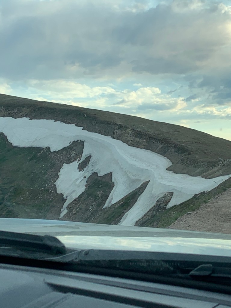 This one looks kinda pitiful compared to bull yesterday.. This big guy had to be coaxed to raise his head with some pretty strange notices from me.😂 8 mile one way dirt road filled with switch backs. Marmot Love the reflection in the water. If you go 11,800 ft. You can still find snow.. Share this: Click to share on Facebook (Opens in new window) Facebook Like Loading... Published by gillsrbornetotravel View all posts by gillsrbornetotravel