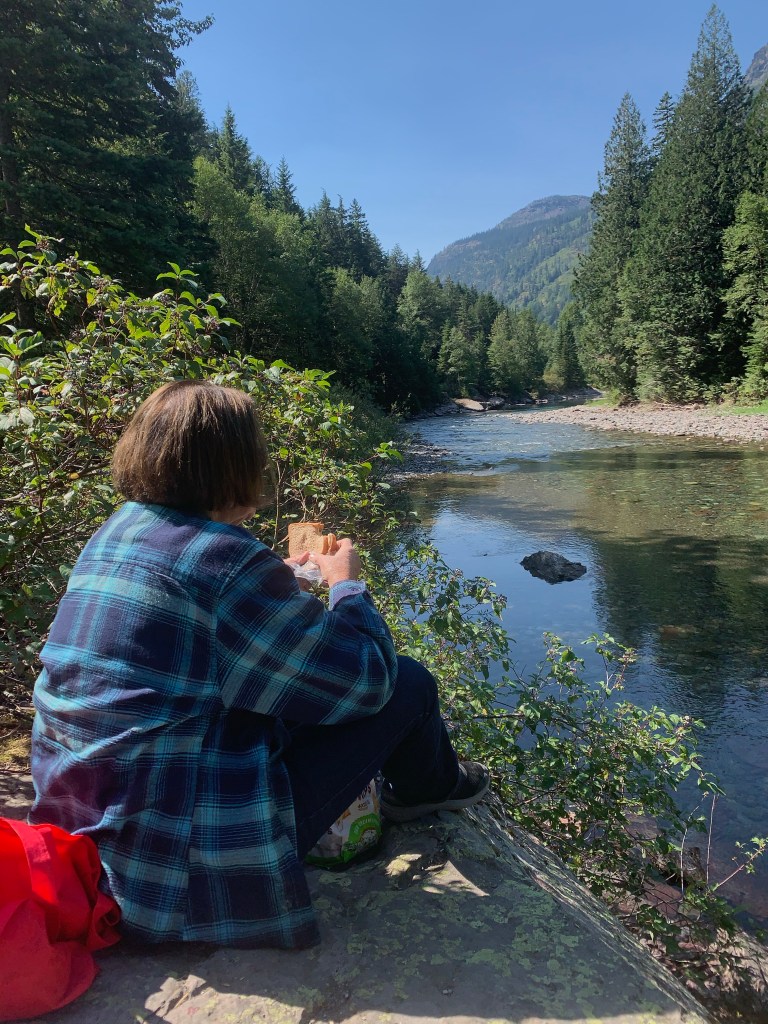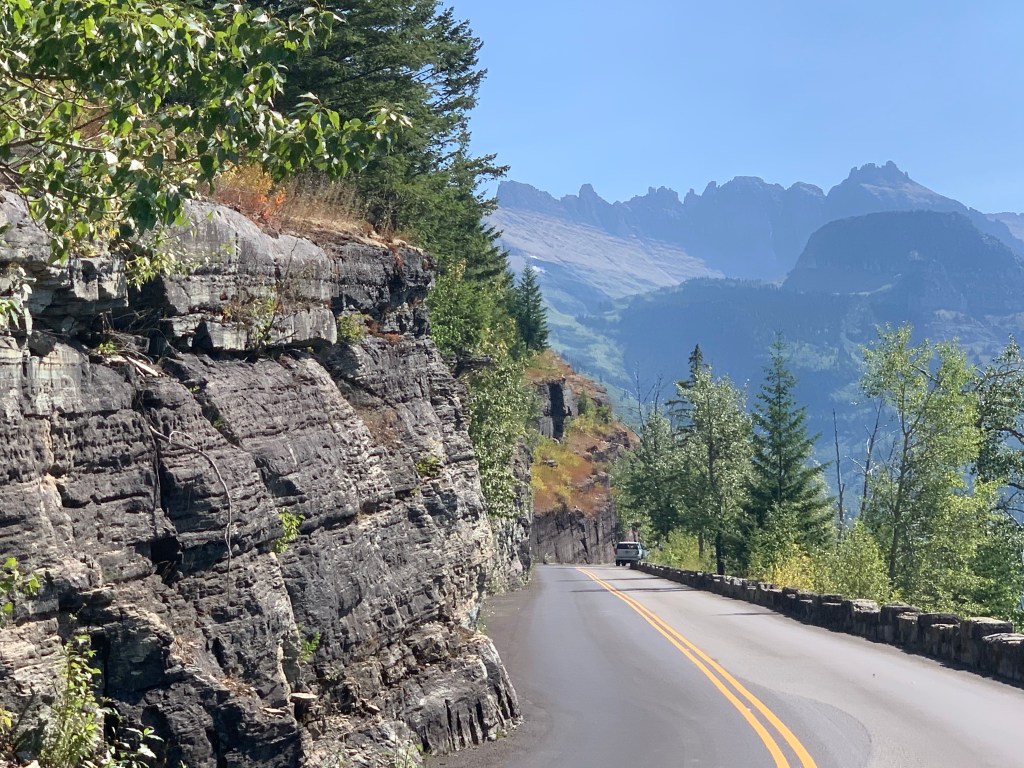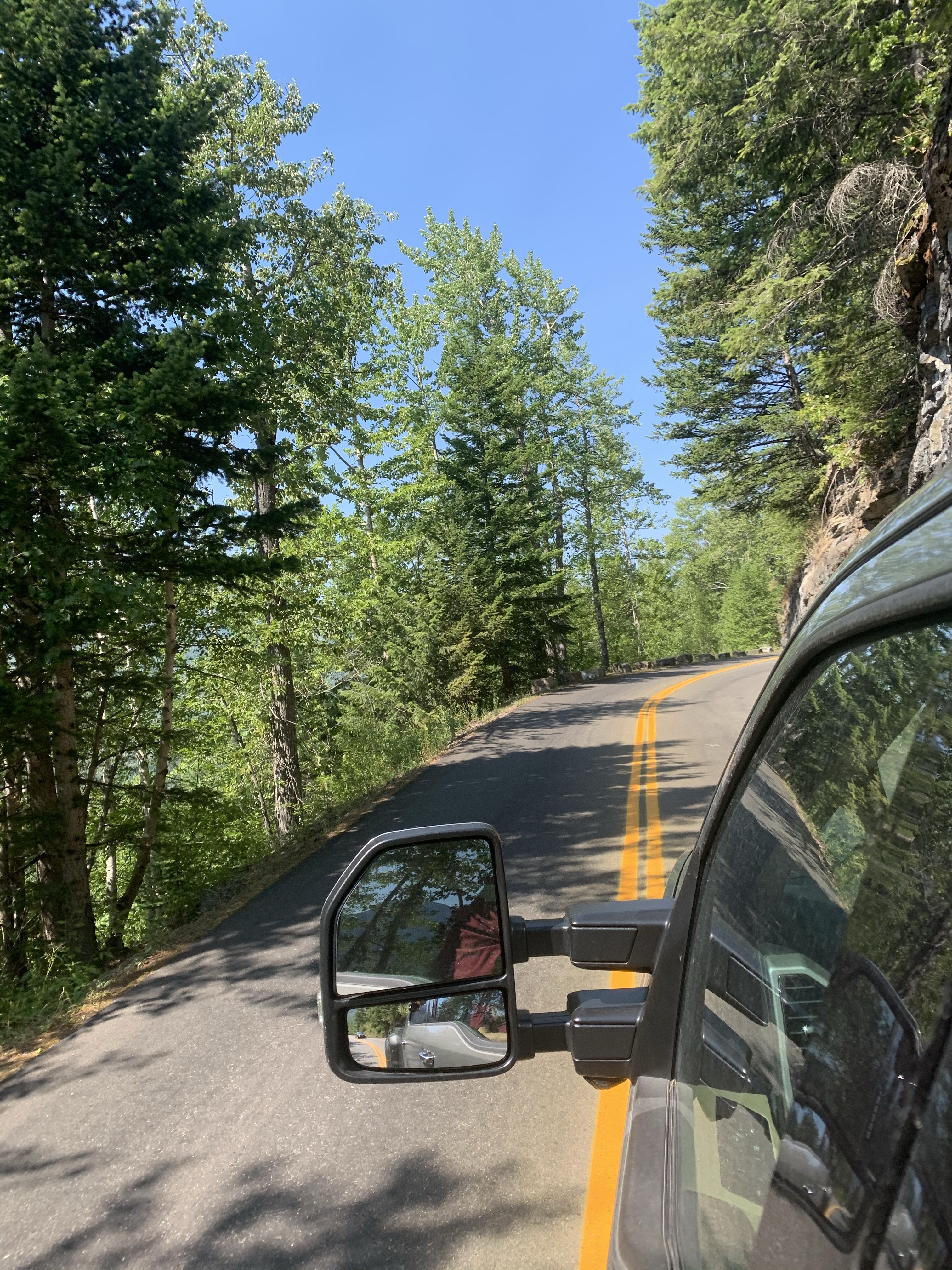 At a really great hamburger and talked with local business owner at Parker’s in DrummondFlathead LakeThis is Flathead Lake. Flathead Lake (Salish: člq̓etkʷ[3]) is a large natural lake in northwest Montana, and is the largest natural freshwater lake by surface area that is west of the source of the Missouri River in the contiguous United States. 8,587 sq mi catchment area and 370.7ft. at its deepest .Glacier National Park West sideMarcia wanted to break out in song”🎼 The hills are alive with the sound of music 🎶 You can see the smoke from fires in Colorado showing up here. This place had FRIED BREAD sooooo good!A fence made from bikes.
