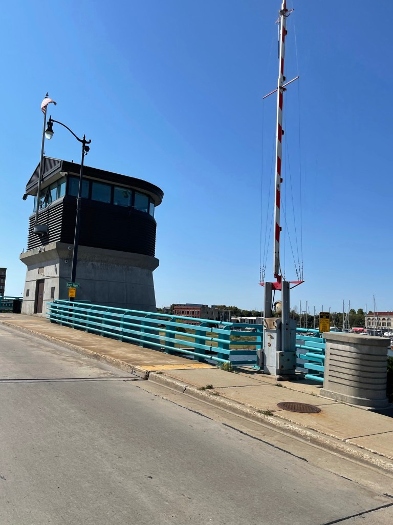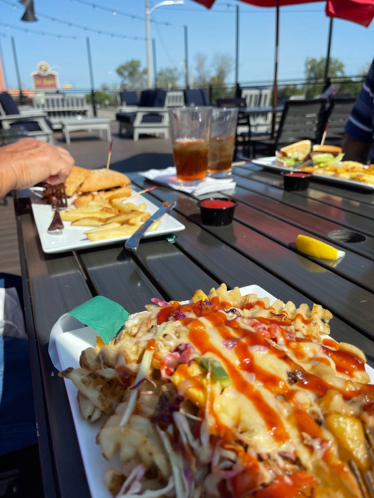 Fog Horn Bldg. Sound could be heard 10 miles away. Lake MichiganDowntown Racine on the far shore. Downtown Racine, WIDrawbridge downtownLoved looking at all the name of boats. Waffle fries with pulled pork , cheese, coke slaw, onions , PINEAPPLE, topped with sriracha sauce. Cheese Castle