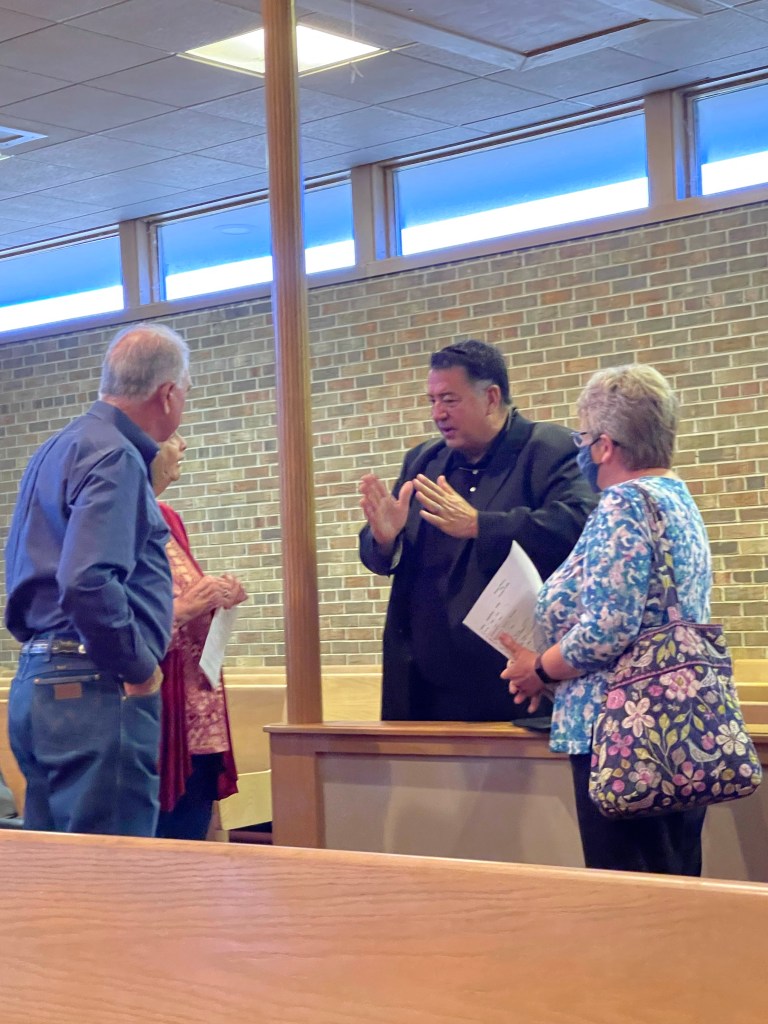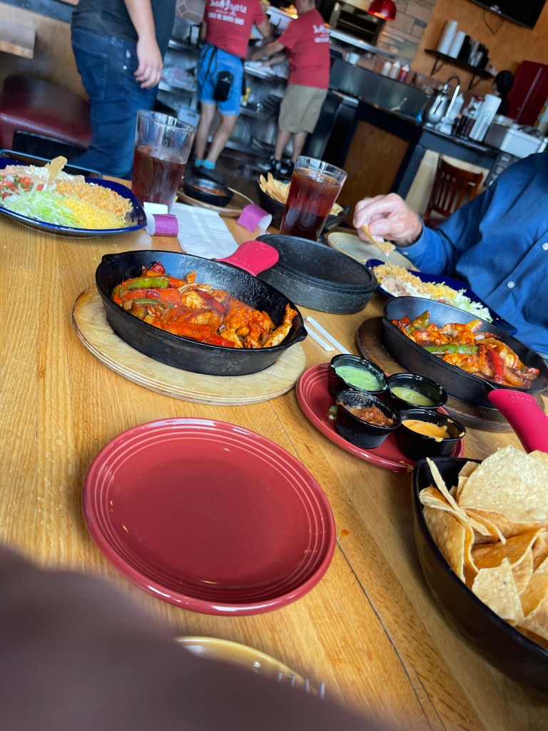 Praise team about to begin at Fellowship in Racine today. This is Bro. David. Marcia and Wayne’s same pastor at this church 15 years ago. We prayed Lord’s Prayer as a church today and this was part of the preparation. Wonderful time of connecting with Father.Coffee bar in the foyer.Sunday and Mexican Resturant, some habits are hard to break. Sample of 4 salsas.