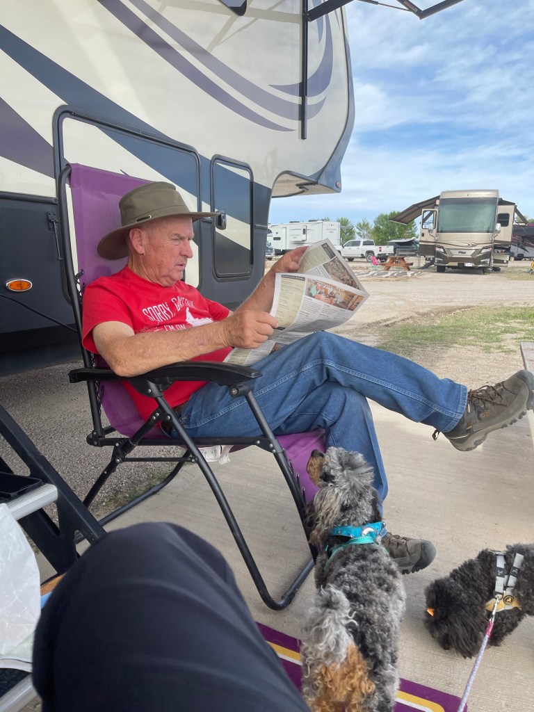 Maverick Ranch has been a great place to stay. It’s remote so not a lot of places to eat. Resturant at golf course, barbecue only open a few days a week, a bakery and pizza combo and I think that’s it. A couple of local convenience stores and gas station. Met new friends, Sheryl and Noel, neighbors at RV park. Sheryl has a cousin in Shreveport. What are the odds of that? They’ve been full time for 2 weeks.