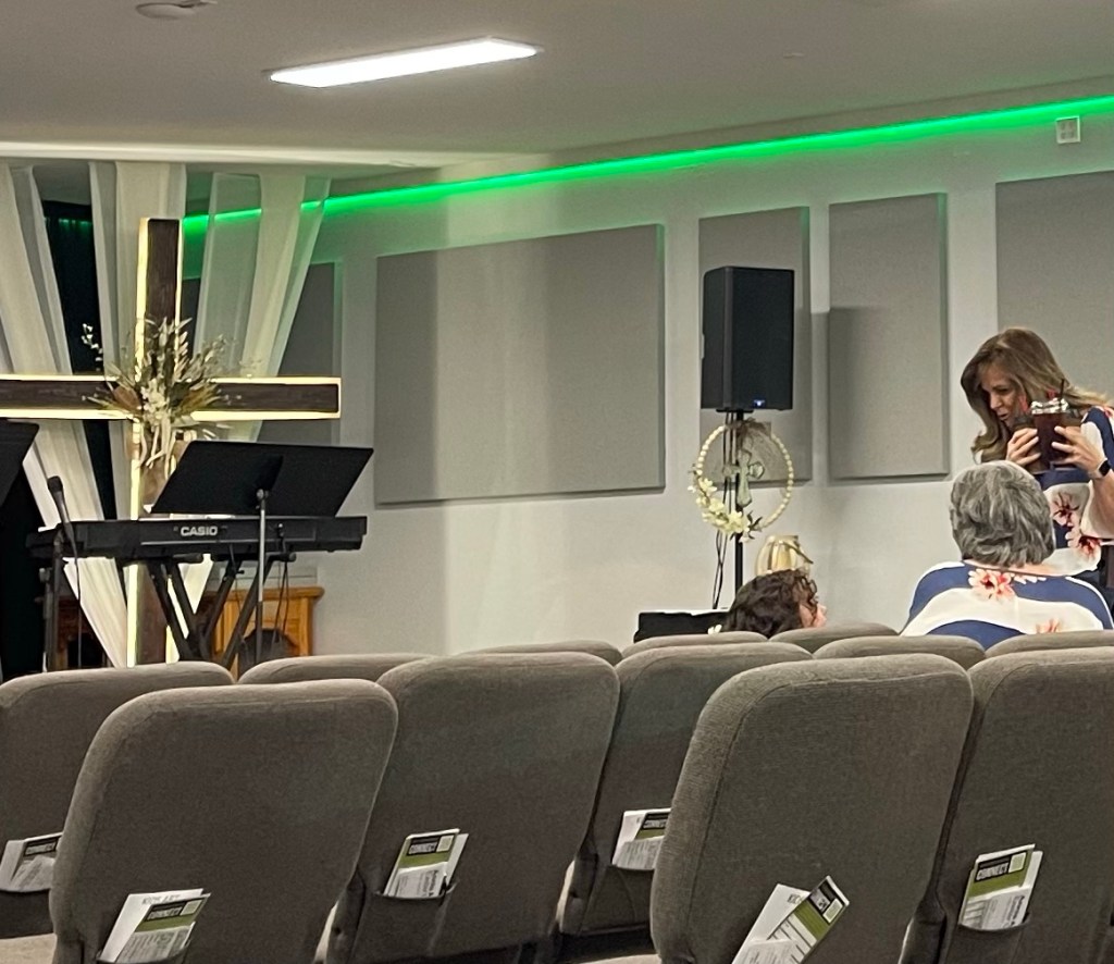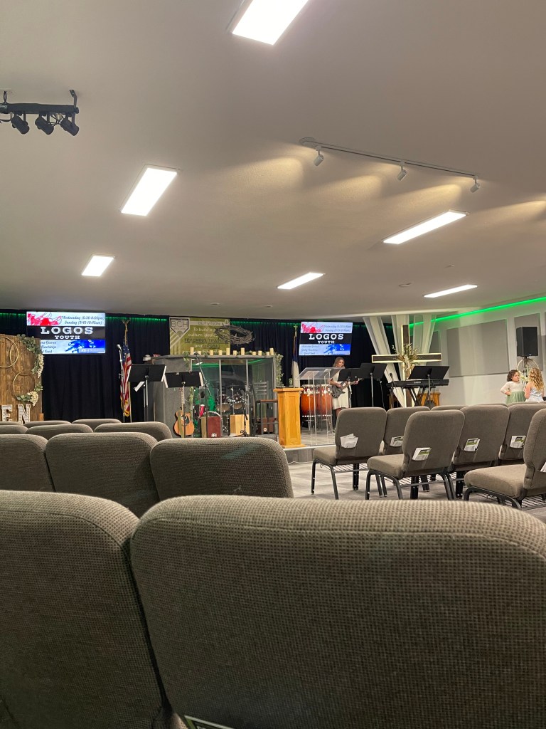 Church of about 150 to 160. ( we were 20 mins. early. Message was good , people were friendly. You went through the kitchen on the way to the sanctuary and picked up a drink and heavy snacks. Took a walk along the river. I could almost reach out and skim the water as we drove by. Sitting on the back porch watching the dock of the bay watching the tide roll away🎼Aspen trees