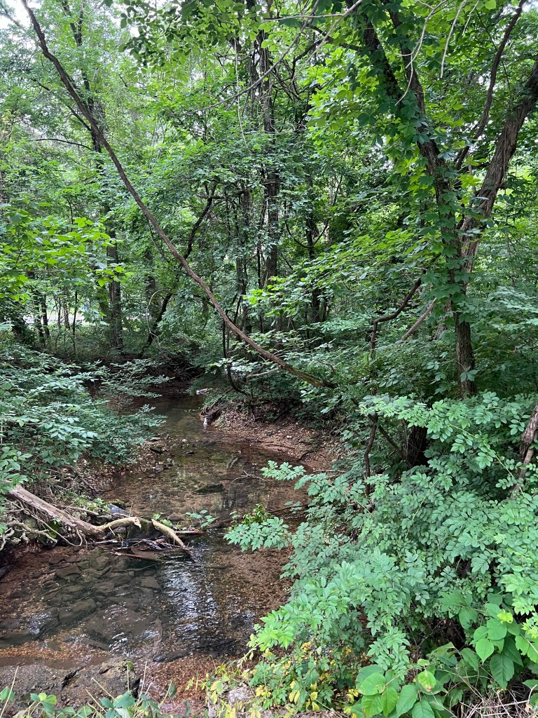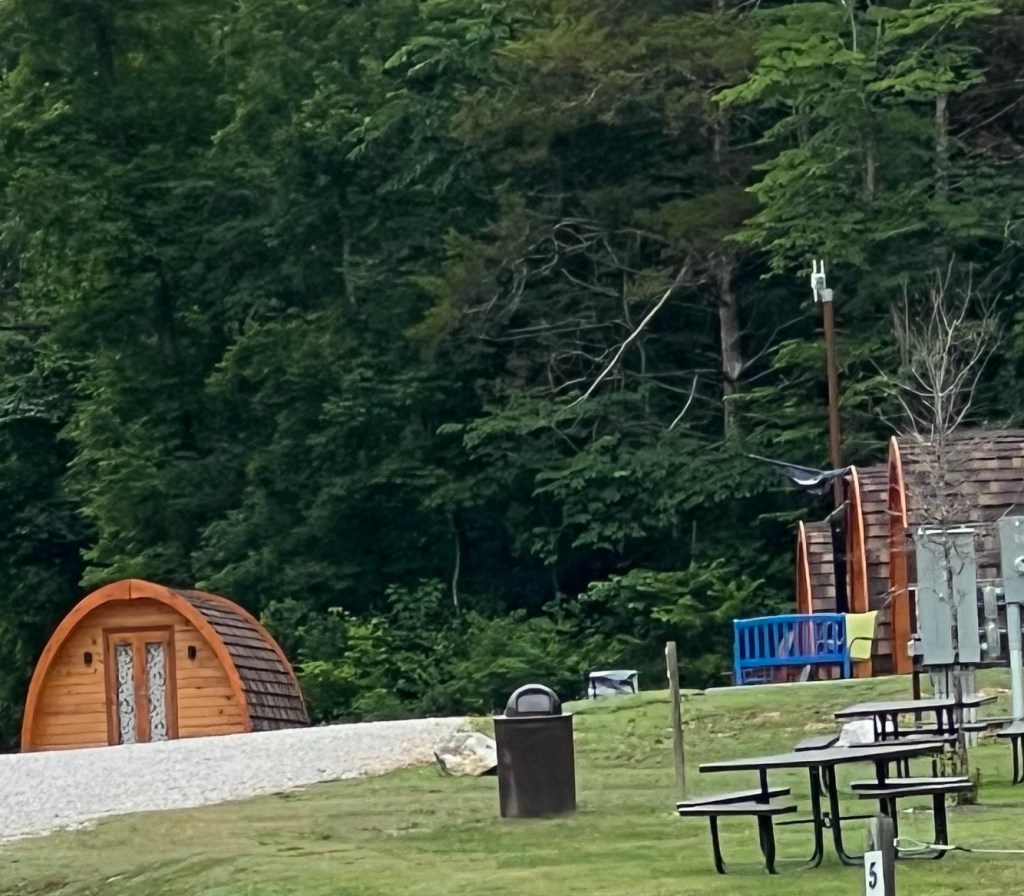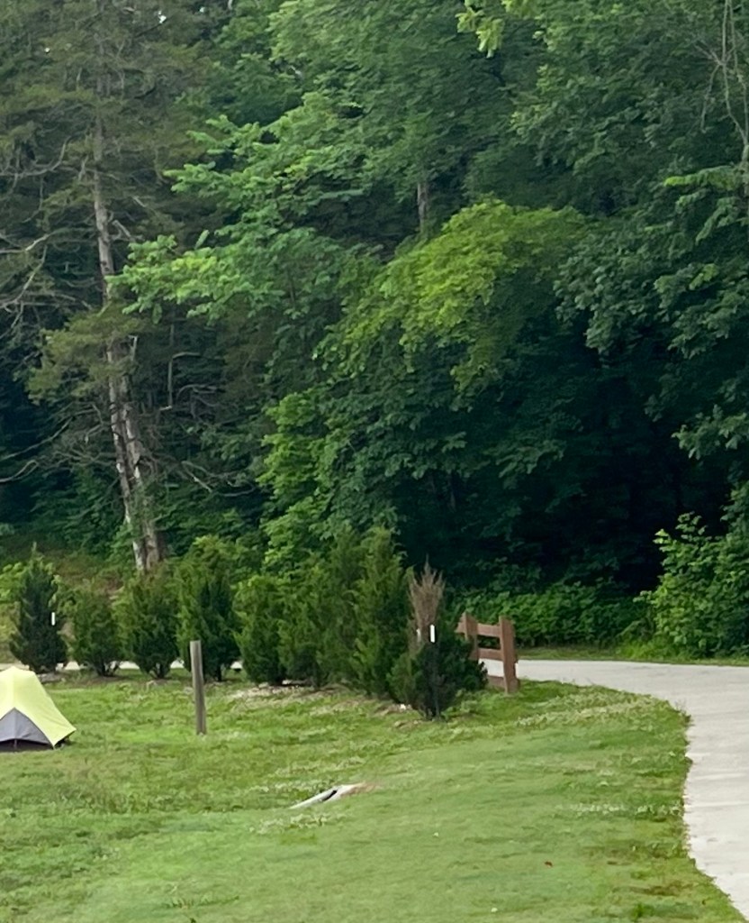 This is our 4th time in the Blowing Springs RV Park . It’s concrete pads with no trees but it’s surrounded by woodlands . It cools nicely in the evening. The fireflies put on a light show for us. At the end of the park is a nice walking path and cute little cabins if you don’t have an RV.