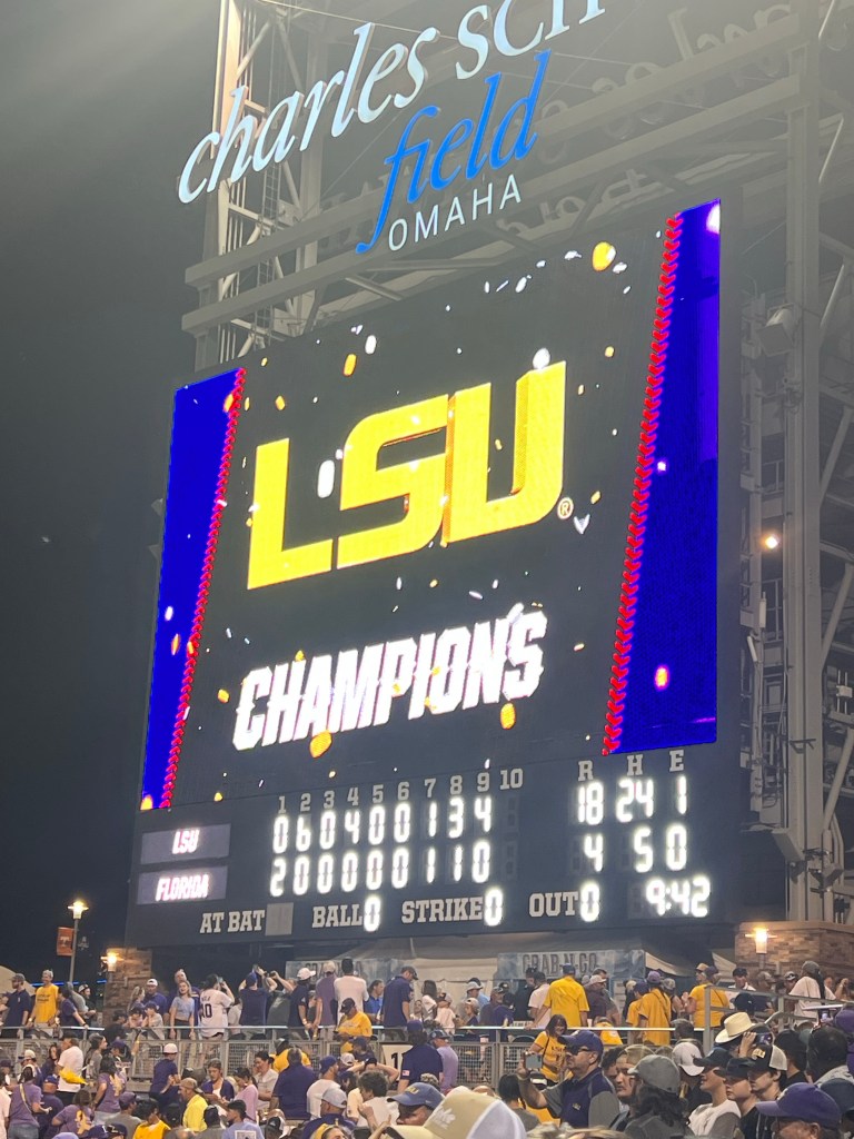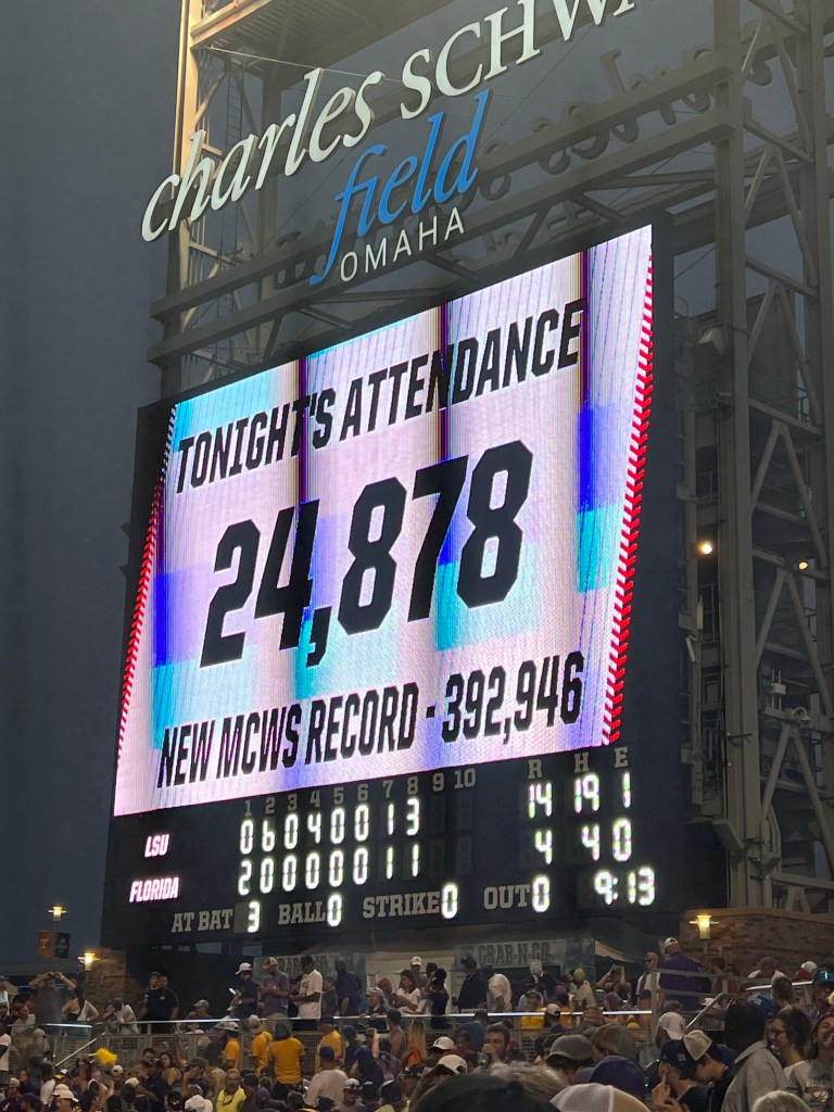Lots of records broken, record attendance. 7 MCWS wins from LSU, Floyd with 17 strikeouts in a game. ( we won’t talk about Florida’s 24 runs in a game record or who it was against) Angela and I went Georgetown High School and Zion Baptist Church together. What are the odds of running into each other?