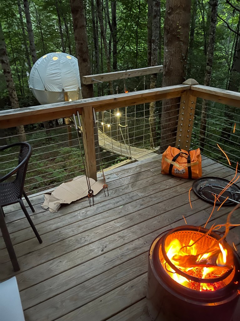 I try to find to find at least unique stay every trip. This is the road up to it. Rarely gets over 80° here, They thought of everything. Head lamps, grill, fire , s’more ingredients, It had a jiffy popcorn toilet ( that’s what I call it) and a shower. One gallon water each for shower. Both were open air outside and at the bottom of the steep hill from the cocoon. This was 5* tent camping. Rock a bye baby 🎶 on the inside. One and done on this adventure. I love experiencing them but only once. Look forward to a hotel tonight.