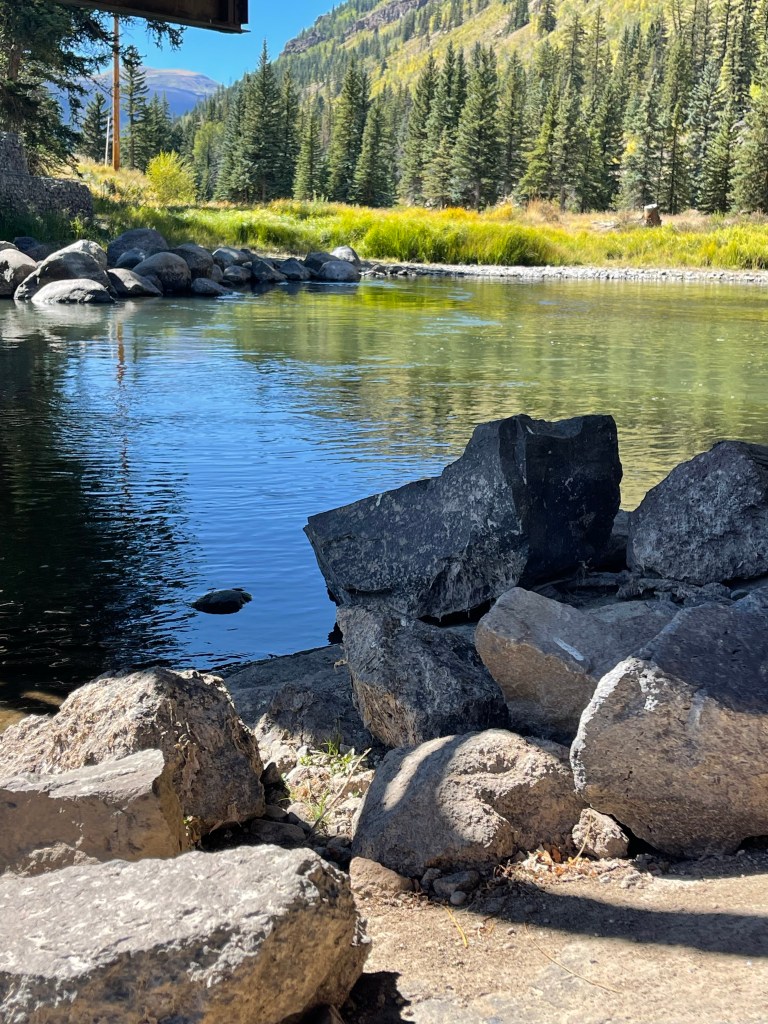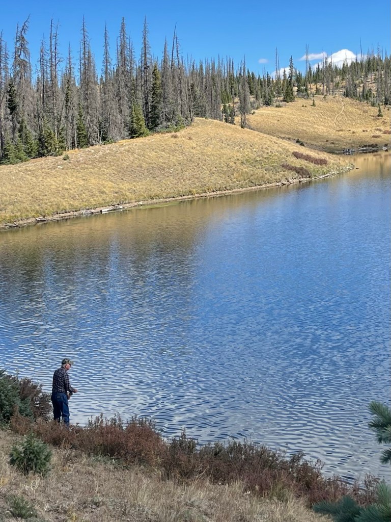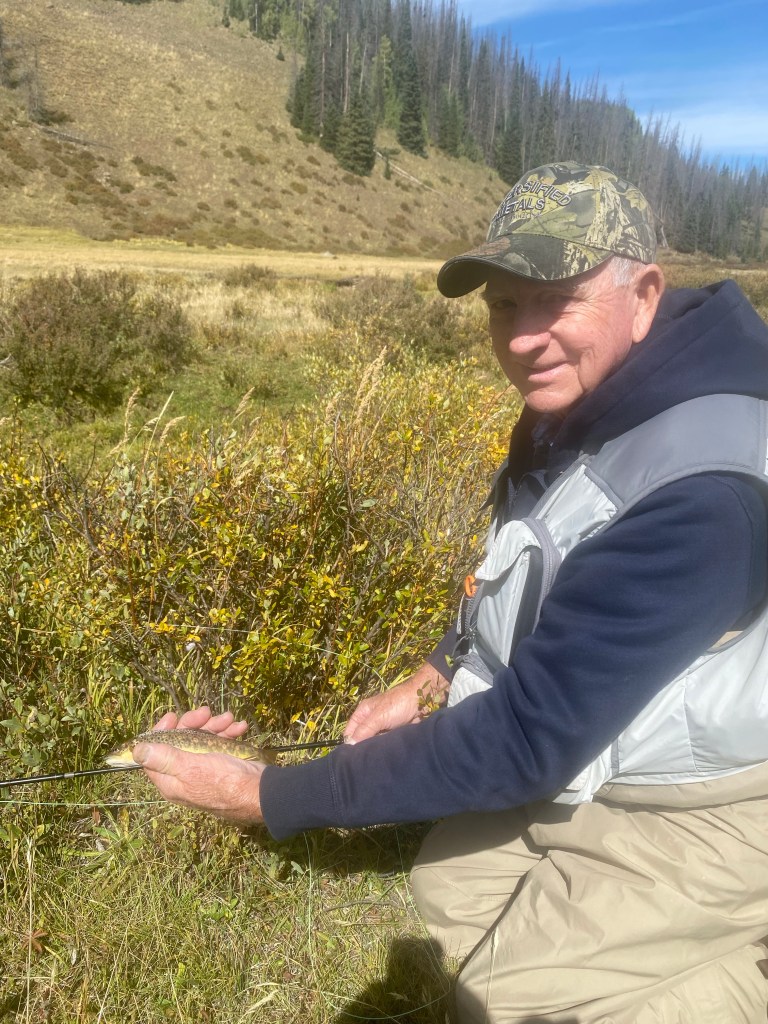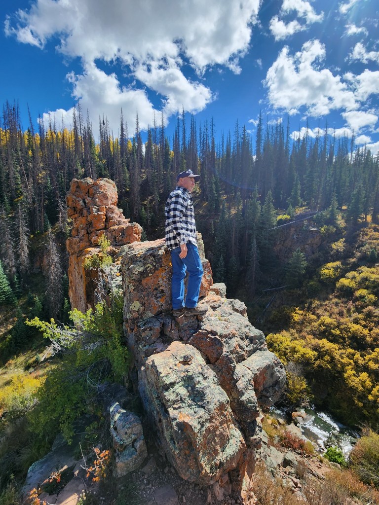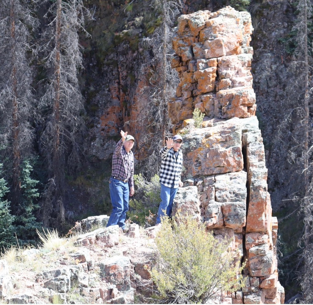 Agate loved his adventure on the Rio GrandeMy “ King of the Mountain”Marcia stayed behind on one of the hikes and this is Wayne sneaking up to scare her. AND HE DID!!!!!We got so tickled and she was such a good sport!Pierce (fishing guide) and Wayne headed to Beaver Creek. Native cut throatBlack Mountain FishingBeaver CreekRetying a fly at Deer LakeFishing the Rio GrandeHiking to Wheeler Geological AreaSelfie 🤳 Agate is always barking and begging but he and Cameo are such happy travelers.