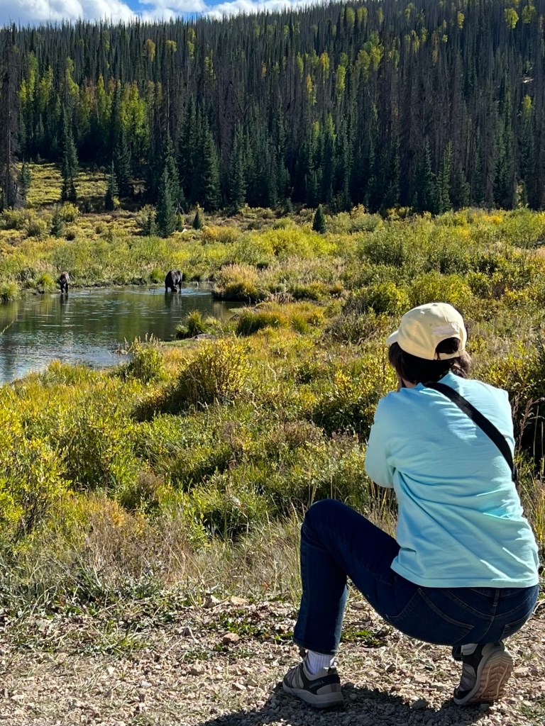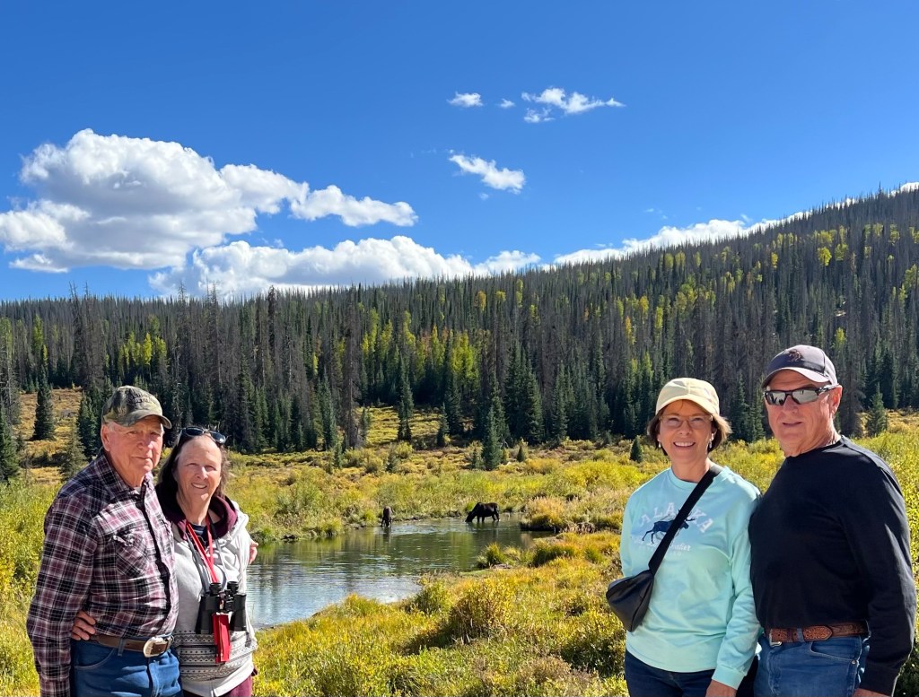 MisCHEIFJust a sitting Pointing out the Twin Sister MountainsThose gray jays kept dive bombing Marcia for her Cheetos while picnicking at Wheeler. They said you need a side by side to get there but the guys got us there in a jeep. Where have we been and where are we going next?Moose in the back groundAt least 50 yards back. Photo op ( really needed to catch my breath)