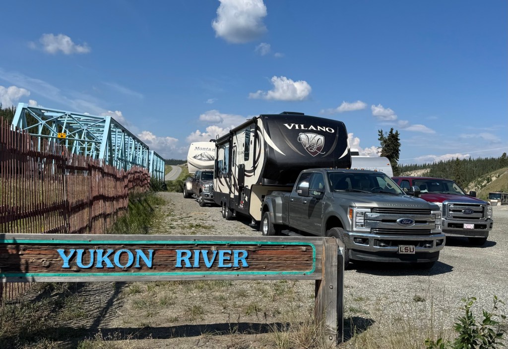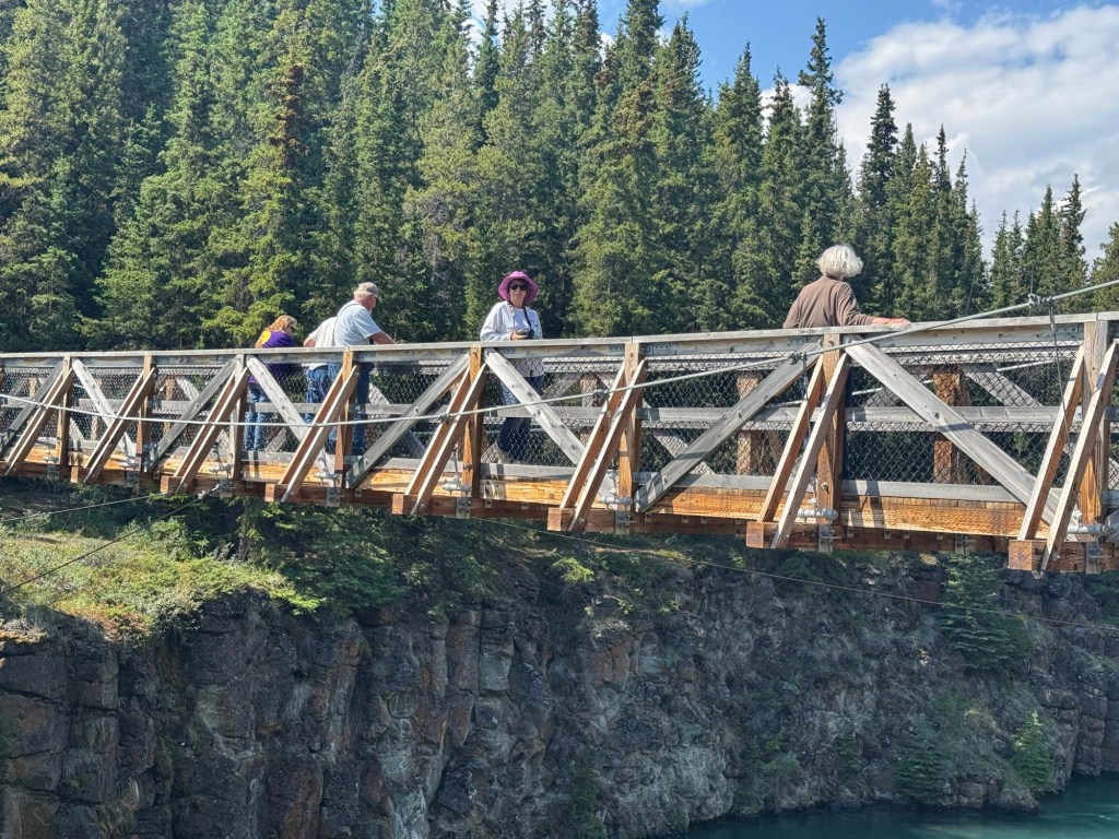 Whitehorse Suspension bridge in picture below Miles Canyon The water is really that blue Wayne found his Mexican food. Every layer was as porportioned as well as the top was. Debbye & Brie’ found some other Klee Kai pups at Teslin. 22 Share this: Click to share on Facebook (Opens in new window) Facebook Like Loading... Published by gillsrbornetotravel View all posts by gillsrbornetotravel