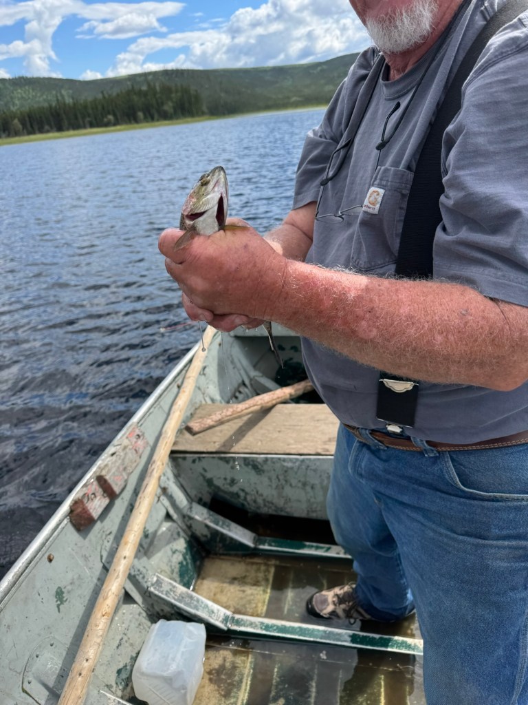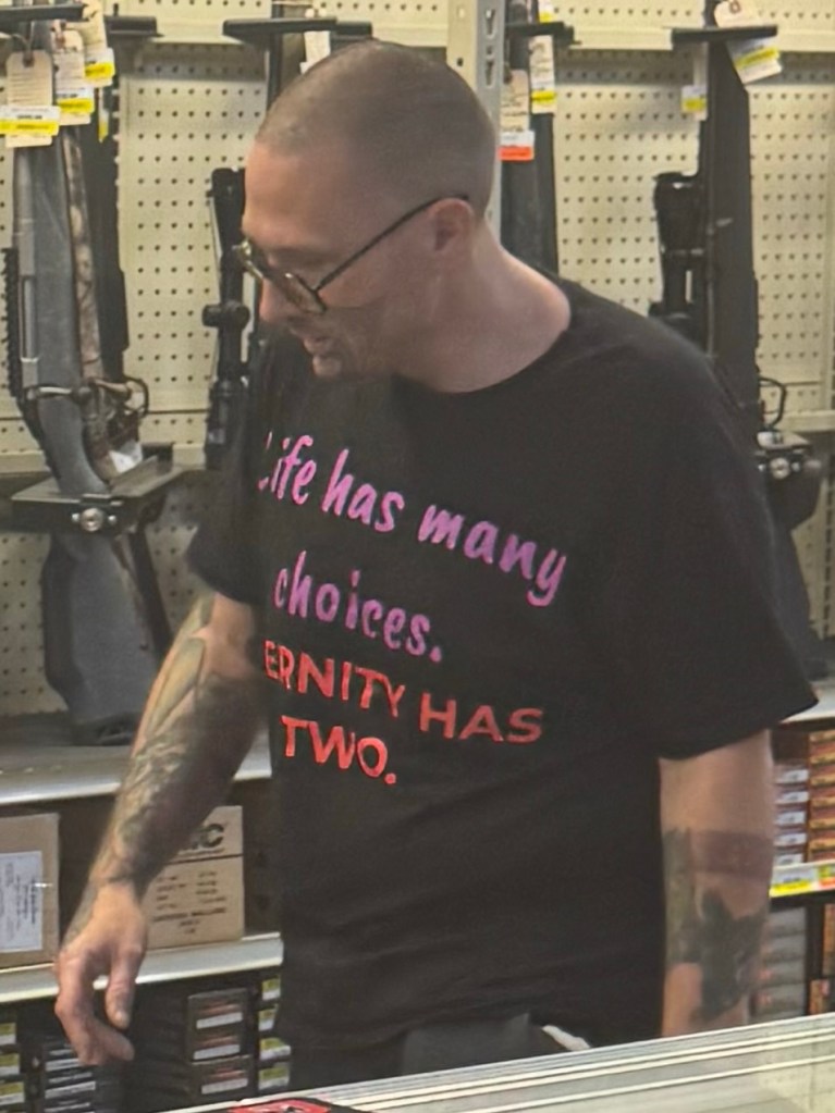 Marcia, Debbye and I did some shopping. We met this radio missionary that also worked at Ace Hardware. He told us how his group has a radio station and they have translated the Bible into the native Alaskan, Athabaskan dialectic and the refugees from Ukraine, into Croatian dialectic. ( the hotels sponsored the Croatians in coming here) I think he said they read their dialectic 3 times a day on the radio station. I ask if we could pray for his ministry and he let us. I think you’ll be able to read his T-shirt but just in case it says ,” Life has many choices but death has only two.”