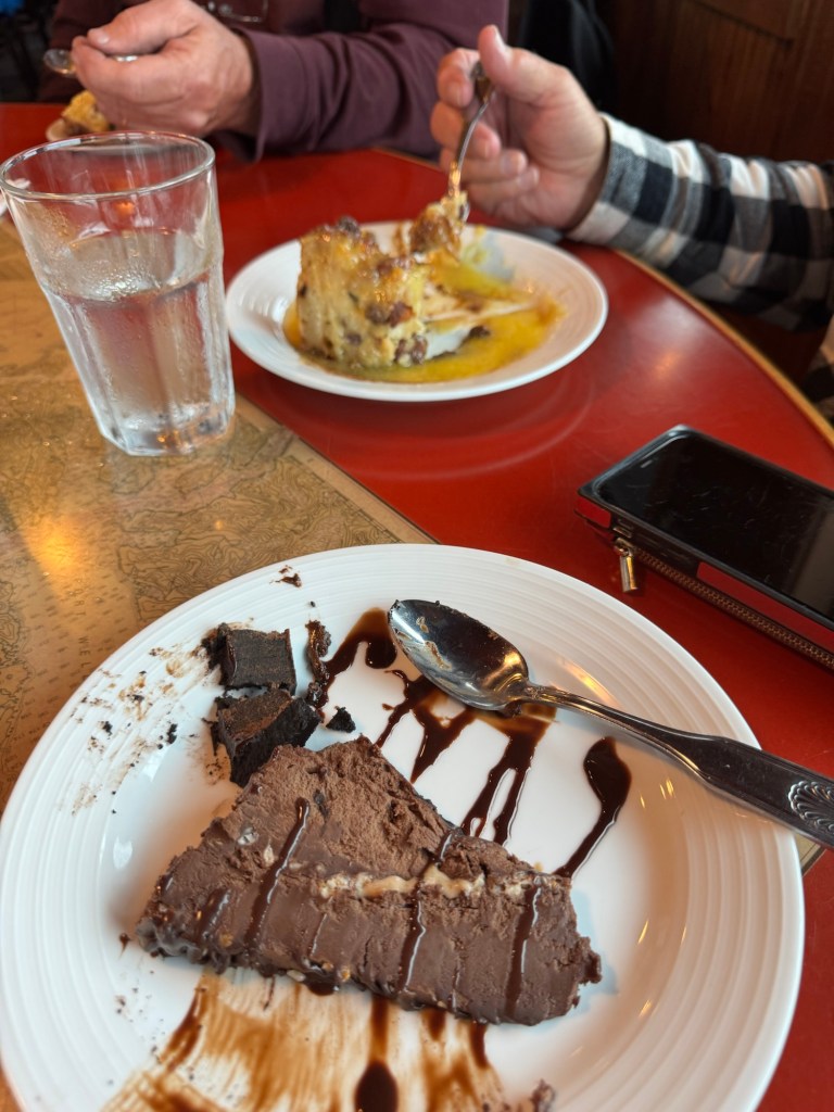 - Creole Bread Pudding- vanilla custard- soaked sourdough breaded dotted with raisins, laden with buttery whiskey sauce.