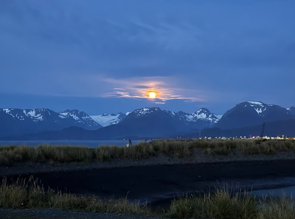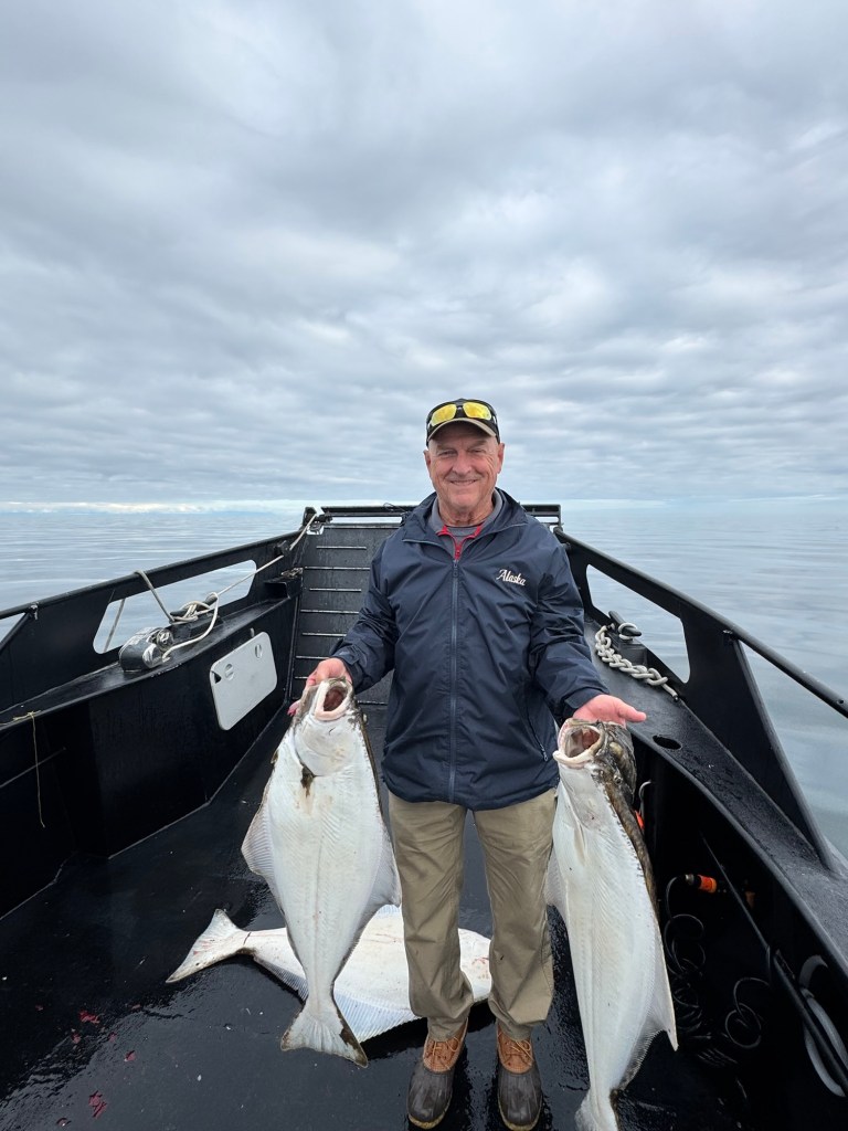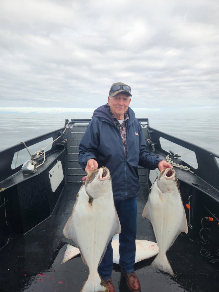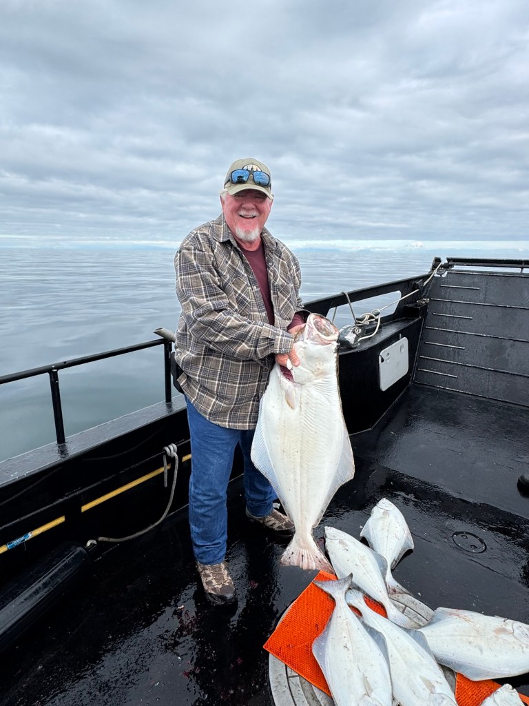 Homer SpitSunsets but no real darknessNice catch of Halibut. My absolute favorite next to catfish. Very clean tasting white fish. Allowed to catch 1 over 27”& 1 under 27”On the fishing boat with Lou & Brenda Anda Samaritan’s purse Chaplin from near Whicita Falls