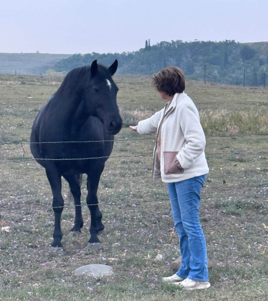 She was named a unique name, Black Horse. Lol! She liked apple after a lot of coaxing. She didn’t like peppermint but the owner of the park did ! 😂