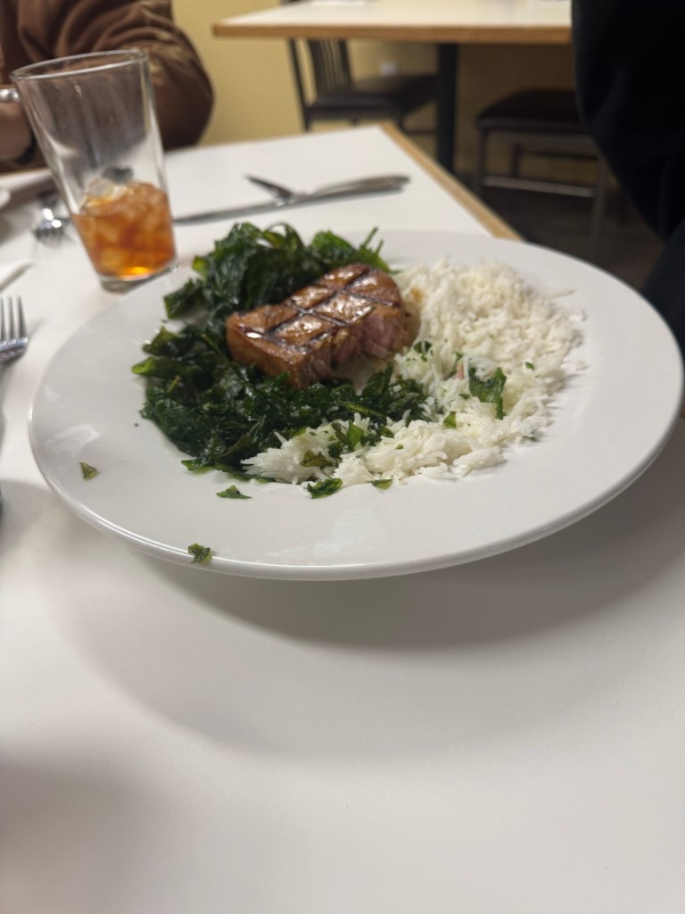 The guys went out fishing with John today. The guys had another good day. Asparagus salad, Tuna steak, fried spinach and rice with pumpkin bread with cream cheese frosting. . Barbecue ribs and stir fry last night with raspberry cheese cake.